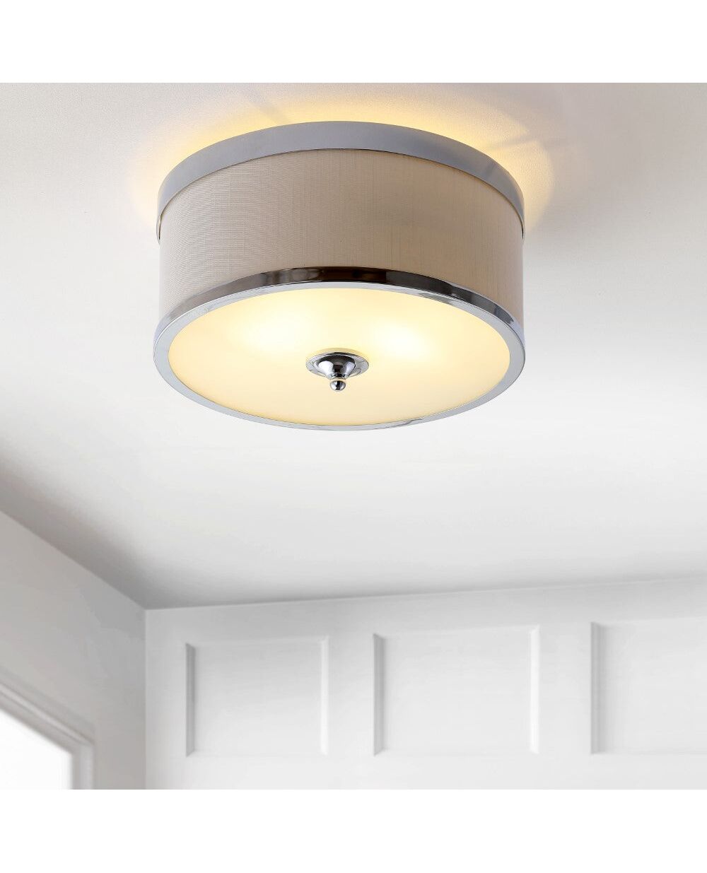 A simple and modern piece, this flush mount is versatile and small in scale, making it suitable for low-ceilings. Its LED-compatibility makes it convenient and energy-efficient. The chrome bands add a versatile and chic finish.