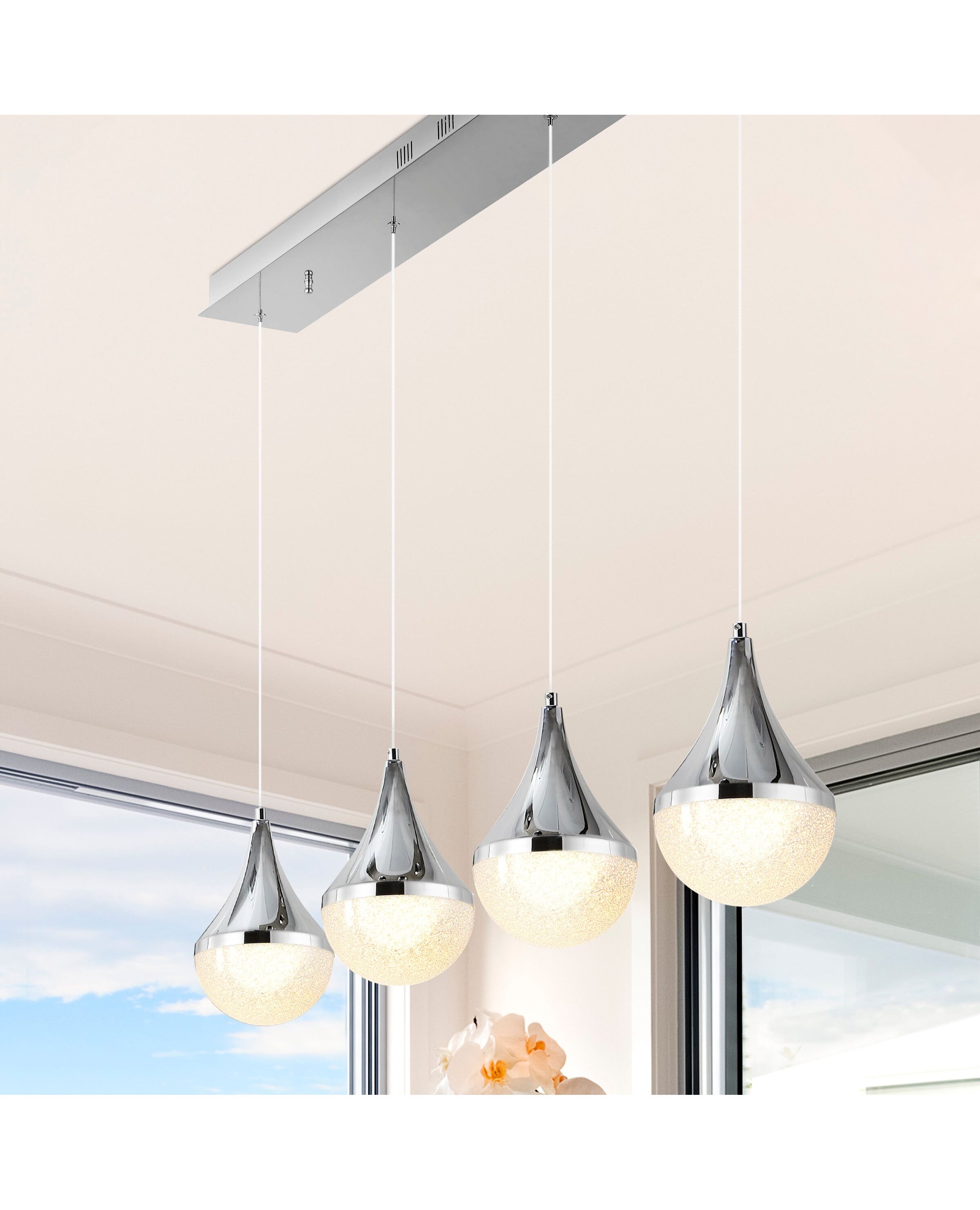 Elena Teardrop 47" 4-Light Modern Mid-Century Iron/Acrylic Integrated Linear LED Pendant