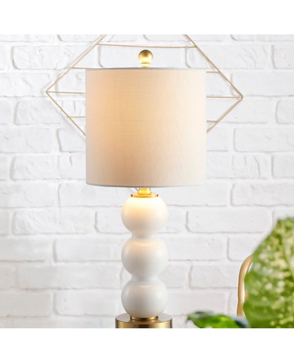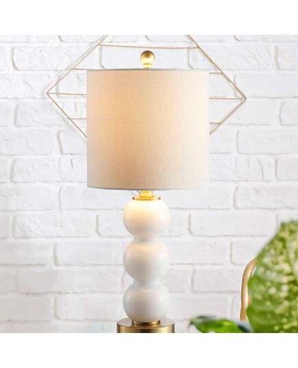 Combining a playful elegance and luxe materials, this stacked sphere glass table lamp will gracefully light any space. Taken from Art-Deco inspiration, its gracious silhouette is created by the linear geometry of three symmetrical curves, as if containing identical spheres. Finished with brass hardware, the look is both elegant and statement-making.
