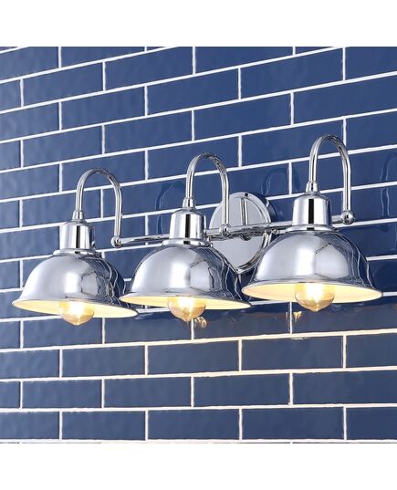 The traditional lines of this wall light give it a pared-down classic look. A sparkling chrome finish and metal shade adds low-key vintage style over a bathroom mirror or kitchen sink. The bright LED bulb provides plenty of soft light to warm up your space.