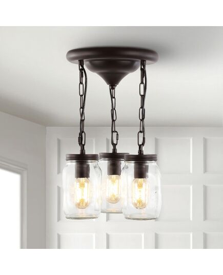 Add farmhouse flair to your kitchen or dining room with our Mason-jar Edison bulb ceiling light. Three LED bulbs in glass jars provide plenty of warm light. Hanging chains and a bronze finish add rustic, industrial style to any room.