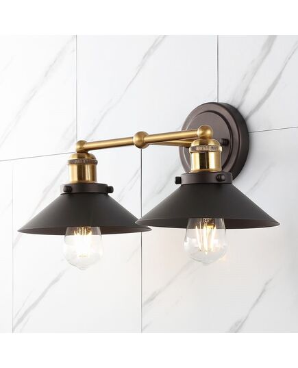 Like a classic barn light but in a modern shape and smaller scale, this classic design features a metal cone shade that conceals the top half of the bulb -- perfect for a clean, industrial look. In a matte nickel finish, this sconce is perfectly at home on either side of a bathroom mirror or as extra lighting in kitchens, where your hardware truly shines. Also available in multi-light configurations, the geometric shape adds elegant interest to any space.