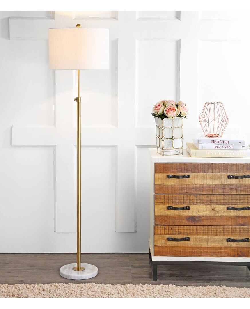 Cast a precise glow with this metal floor lamp's adjustable shade, which can move up and down 10" to align with the perfect height. The marble base provides a sturdy foundation to prevent tipping and a fun dose of style. Finished with a silk-wrapped cord, the details exhibit the luxury craftsmanship inherent in this design.
