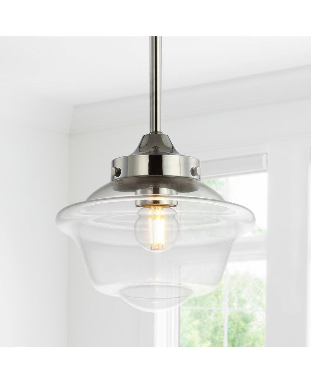 Though originally used in pharmacies because of their simple upkeep -- the glass is simple to dust, bulbs easily changed from removing the shade from below -- this pendant's silhouette is perhaps most famously known by students of the 1950s as "the schoolhouse pendant" thanks to a large government order that made this the official light of chemistry labs until the mid-70s when fluorescents were installed (forgive them!). We took inspiration from the original -- gracious curves, simple upkeep, and adjustable drop -- because if there is one thing we have learned, it's that great design never goes out of style.