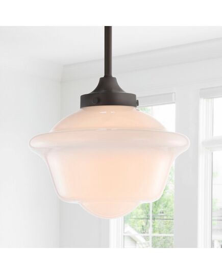 Though originally used in pharmacies because of their simple upkeep -- the glass is simple to dust, bulbs easily changed from removing the shade from below -- this pendant's silhouette is perhaps most famously known by students of the 1950s as "the schoolhouse pendant" thanks to a large government order that made this the official light of chemistry labs until the mid-70s when fluorescents were installed (forgive them!). We took inspiration from the original -- gracious curves, simple upkeep, and adjustable drop -- because if there is one thing we have learned, it's that great design never goes out of style.