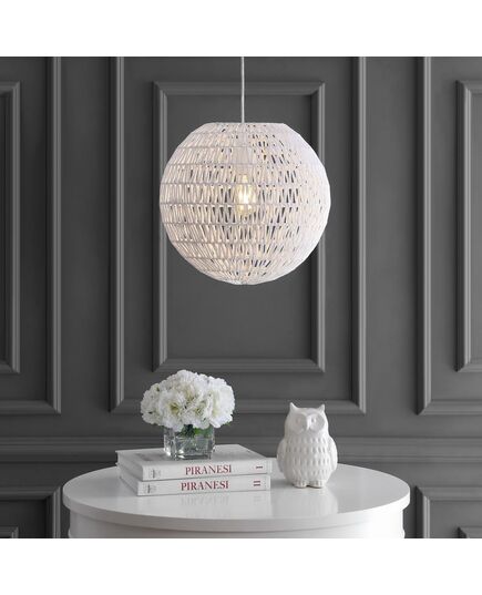 Modern design meets traditional craftsmanship in our white woven globe pendant. Made from paper wicker woven onto a sturdy metal frame, this ceiling fixture adds a Bohemian touch to your living room, bedroom, or dining room. Additionally, the drop is adjustable from 16" to 88", making it suitable for a ceiling of any height.