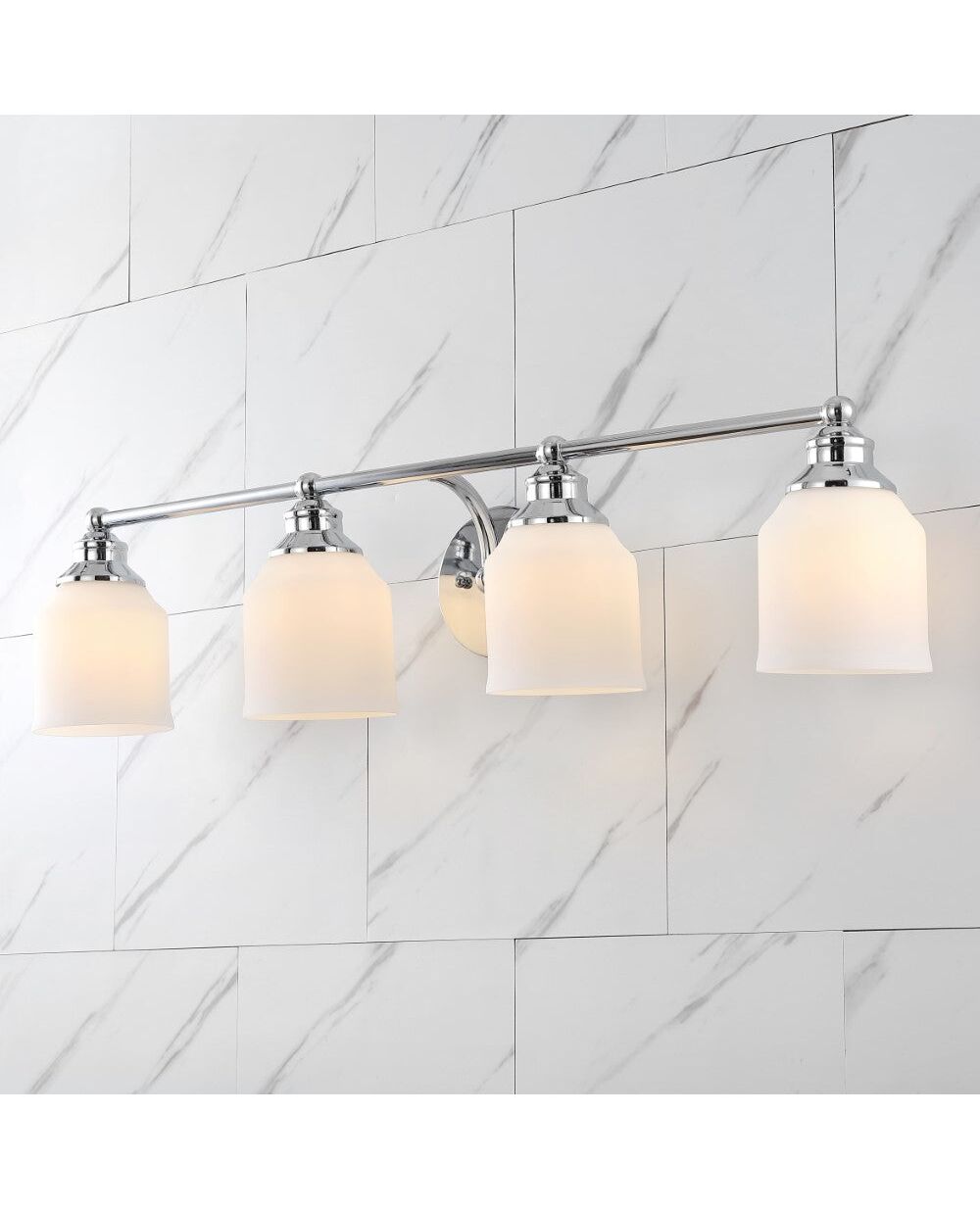 Elevate your urban apartment, cottage or farmhouse with our versatile take on a classic wall light. The included LED bulb casts a warm glow, providing plenty of light. The frosted glass bell shade and sparkling chrome finish add elegant vintage style to your bath vanity, or above a kitchen sink.