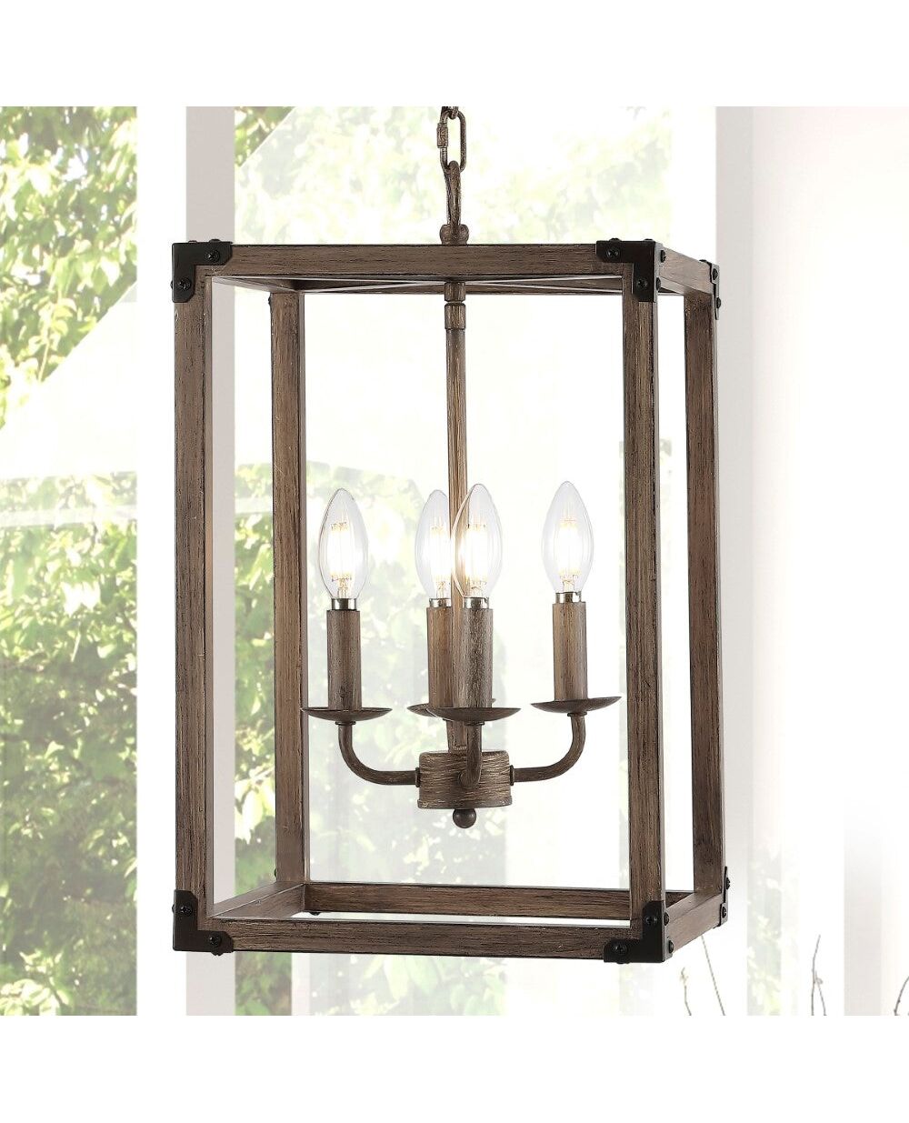 Our square open pendant is ideal for your modern farmhouse, rustic kitchen or industrial interior design. Features four Edison-style LED bulbs inside a barnwood-finished frame, accented with oil rubbed bronze. This rustic pendant is perfect for the kitchen, bedroom, entry or dining room.