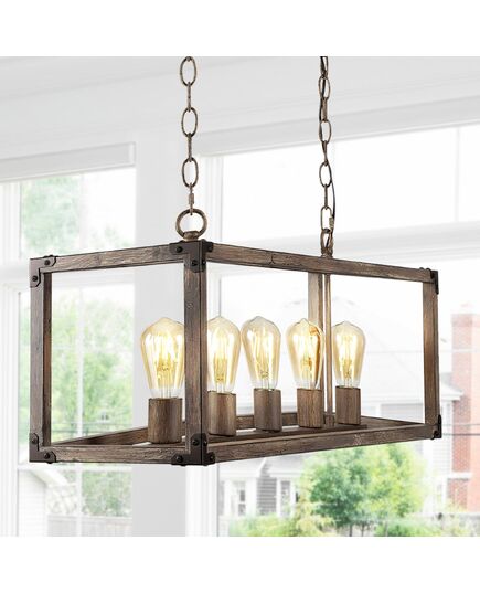 Our square open pendant is ideal for your modern farmhouse, rustic kitchen or industrial interior design. Features Five Edison-style LED bulbs inside a barnwood-finished frame, accented with oil rubbed bronze. This rustic pendant is perfect for the kitchen island, over a long dining room, table or even in a bedroom.