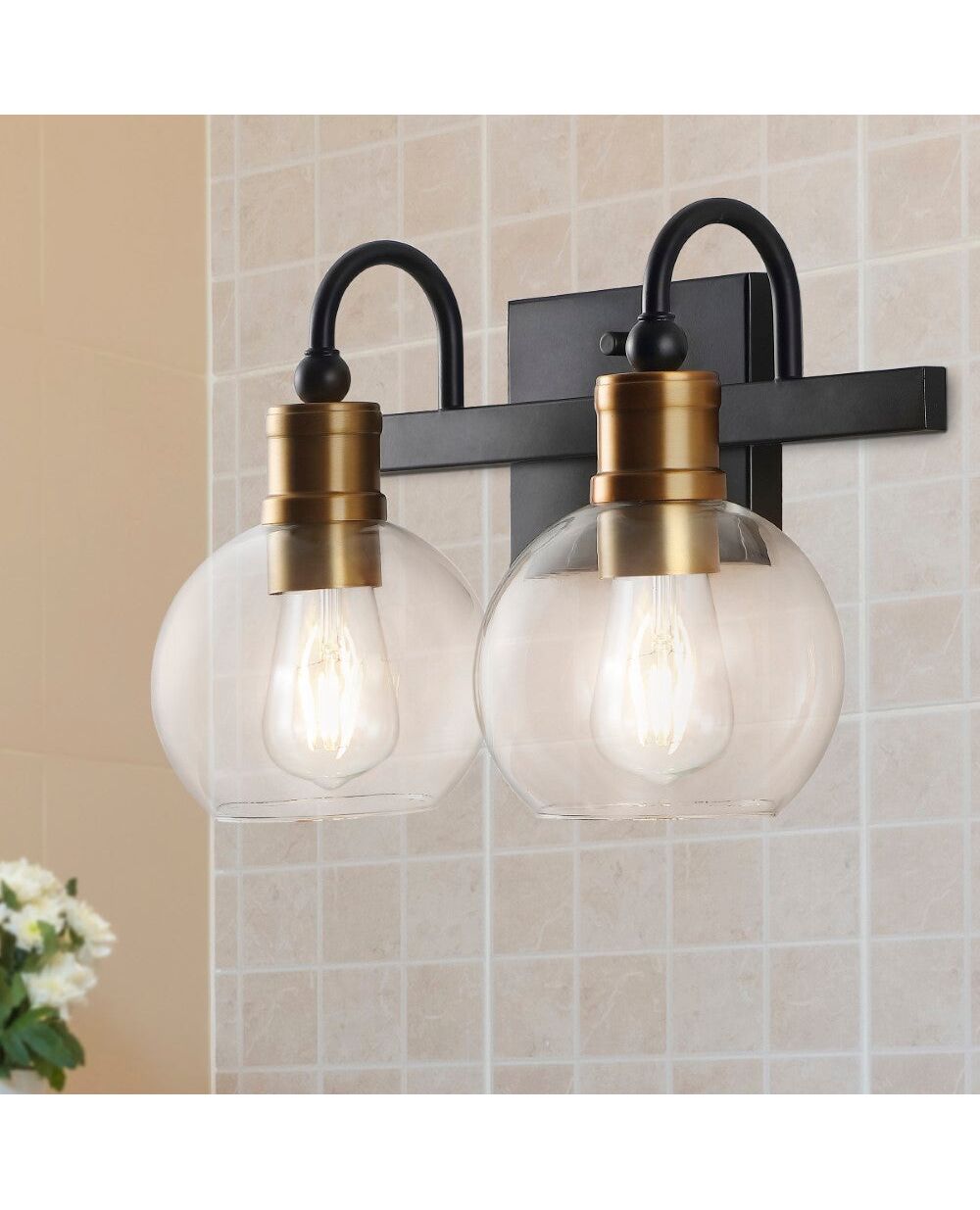 Bring on the vintage Parisian flair with our arched wall light. Two Edison-style LED bulbs cast a warm glow. Brass accents and a clear glass globe add French bistro style to your bath vanity, kitchen, hallway or entry.