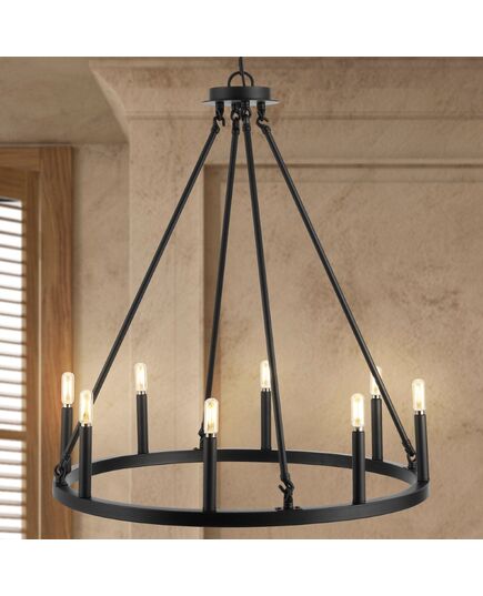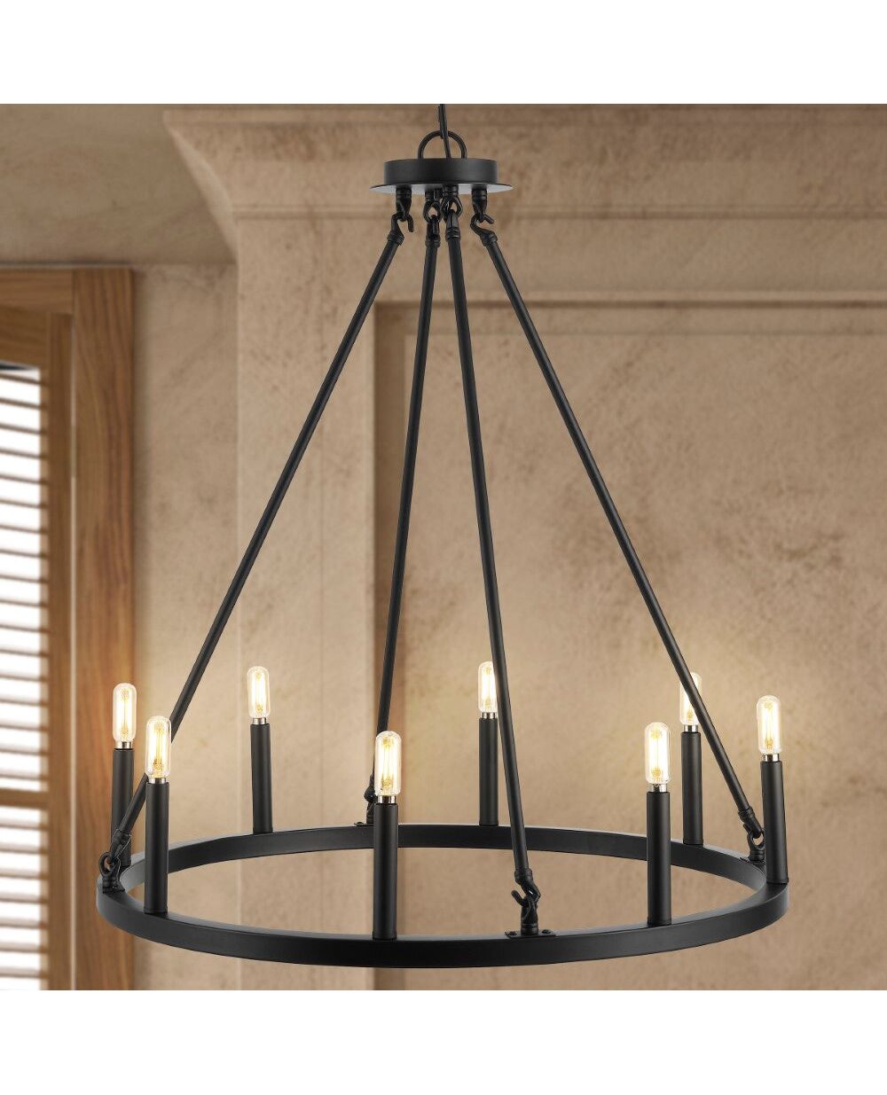 Oberto Ring 28" 8-Light Iron Rustic Farmhouse LED Chandelier
