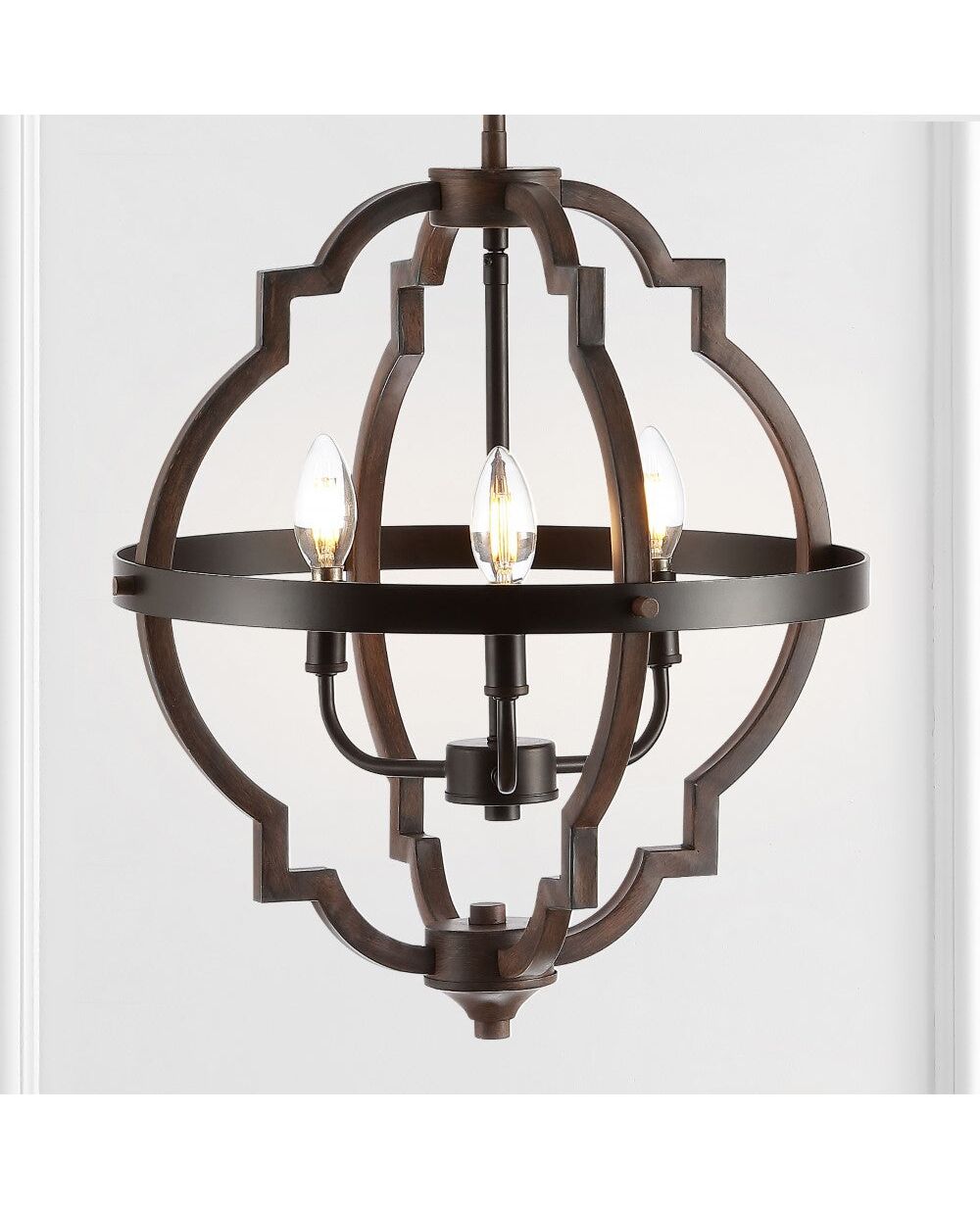 This ogee-curved pendant light is ideal for your modern farmhouse or rustic glam interior design. Features three Edison-style LED bulbs inside an open frame with a barnwood finish. This large pendant is perfect in pairs, over a kitchen island or dining room.