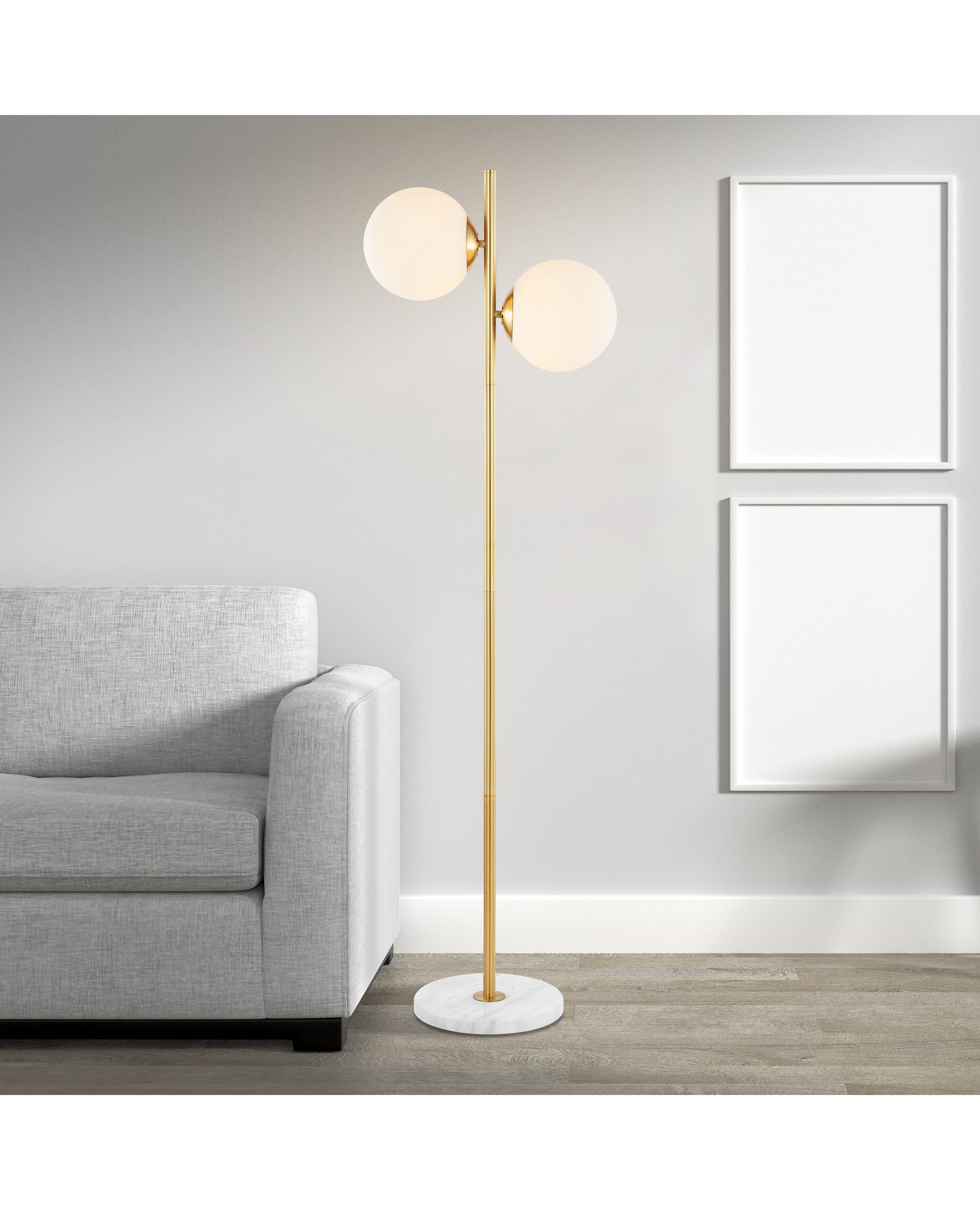 Bring on the vintage Parisian flair with our classic bistro-inspired floor lamp. The LED bulbs provide two levels of warm, bright light, softened by glass globes. This lamp's elegant 60” height is also securely anchored into a weighted marble base.