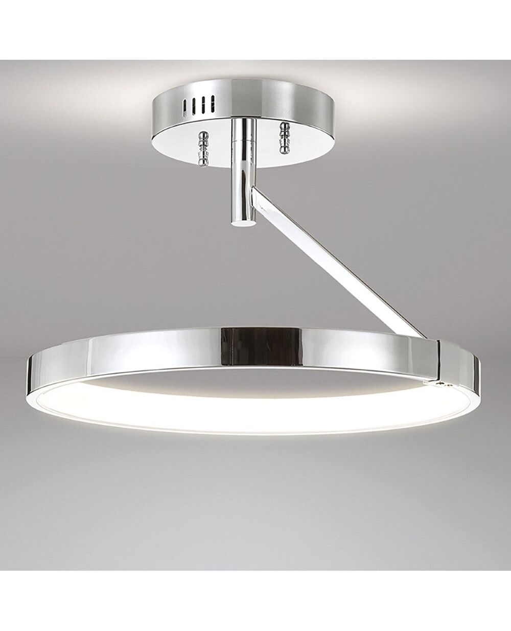 This flush mount adds modern style and seamless light where it hangs. Its integrated LED light is energy-efficient and low-maintenance. The chrome finish is sleek and suitable for any color palette--we love it in a contemporary bathroom.