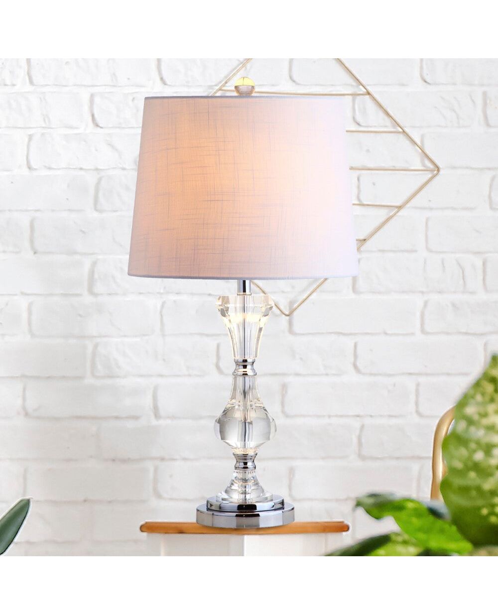 Make room for traditional elegance, as a column of crystal stacks up and sparkles from every angle. The round crystal base of our lamp continues the aesthetic while a slightly tapered linen shade enhances the light's reflection. Topped with a crystal finish and finished with a silk-wrapped 60" cord, this lamp will add traditional glamour to any home.