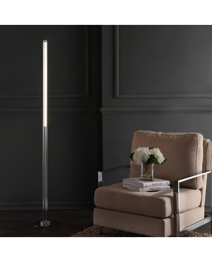 This modern, minimalist floor lamp lights up a room while remaining sleek. Its integrated LED light and touch sensor make it easy to use and energy-efficient. Finished with a beautiful silk-wrapped cord.