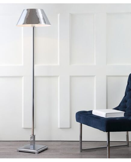 A traditional floor lamp silhouette is made modern by the addition of a brushed brass lampshade. In a classic 60" height, perfect for beside a sofa or chair, it will easily blend in with a variety of décor styles. The silk-wrapped cord completes the look with elegant panache.
