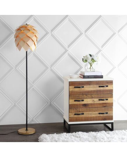 The sketch for this organic modern floor lamp was conceived after being inspired by the modern Scandinavian cabins popping up all over design magazines. Combining utility and style, it is compatible with LED lighting so that you won't have to frequently disassemble to change the bulb. And taking silhouette inspiration from a pinecone, the light shines between the wood panels creating a natural element that also feels very chic.