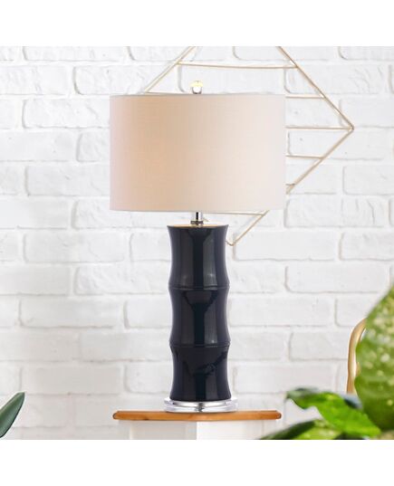 This eye-catching gray ceramic table lamp takes its inspiration from the beauty of natural bamboo. The resulting look is a perfect balance between Asian and modern styles, with a preppy flair. Nickel accents, a crystal base and a white cotton drum shade keep the look contemporary and fresh.