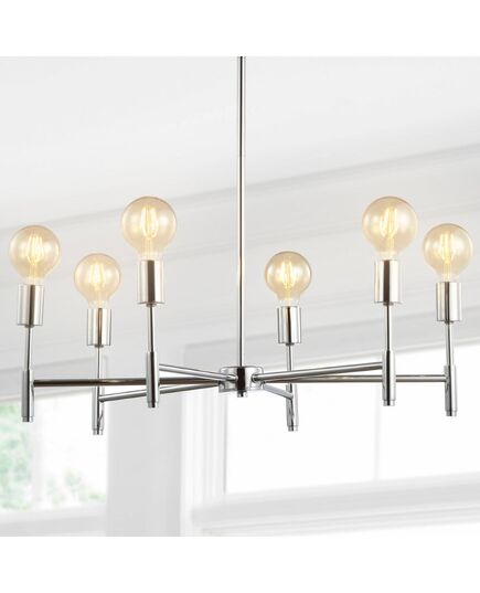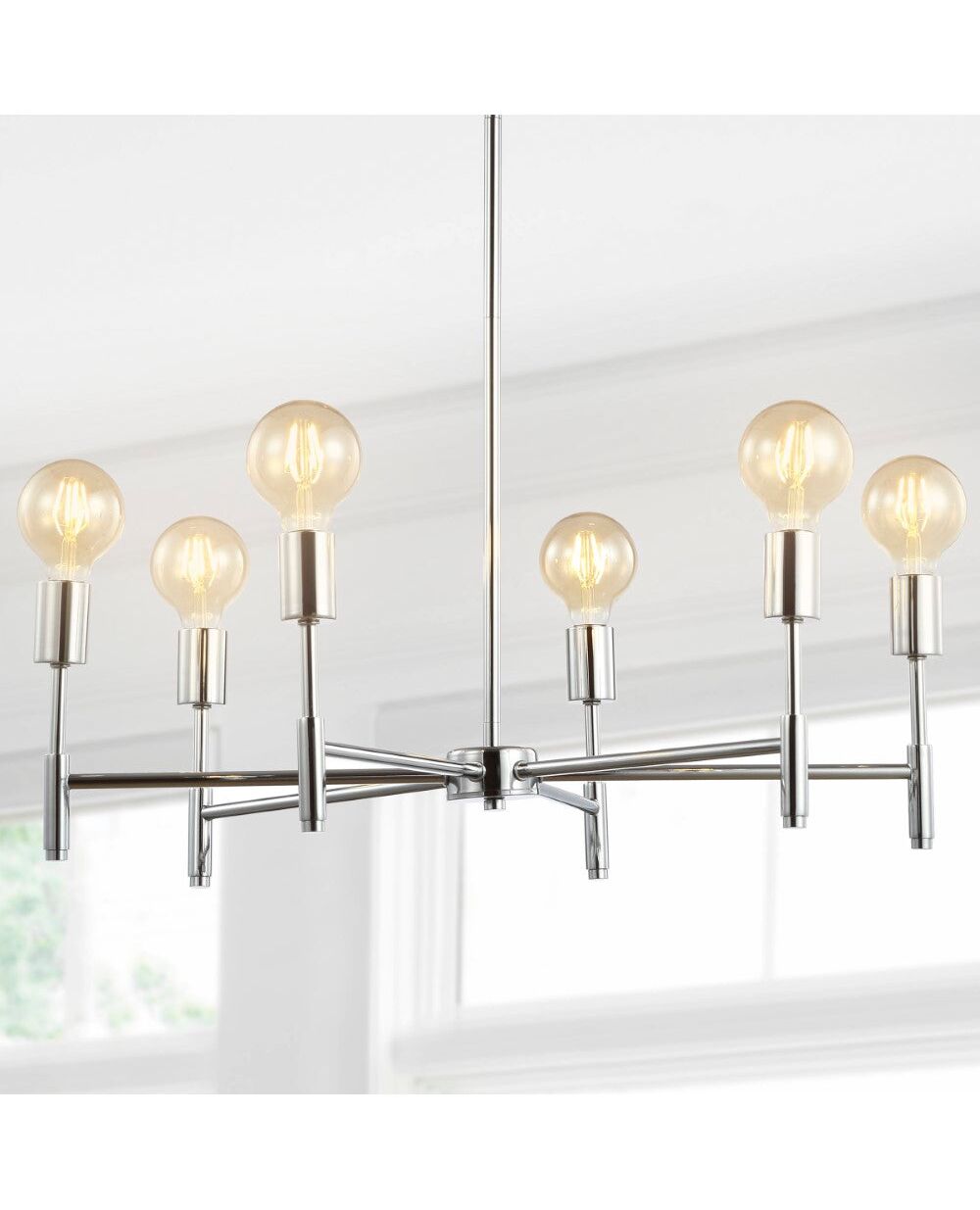 Inspired by modern masters like Gaetano Sciolari, this chrome chandelier would look elegant with chandelier bulbs and shades or modern with exposed round LEDs, as pictured. With six bulbs, it's lumescence would be a fit for a host of home applications from the dining room to the foyer. Add it over a breakfast nook table for a jolt of energy in an overlooked space.