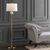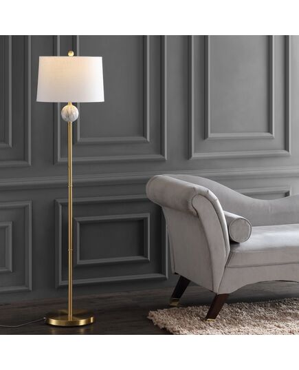 A modern classic, this understated floor lamp has a brass-gold finish and a marbleized resin accent. The rich marble and gold combination suits traditional and modern interiors. Quality details include a foot-step switch and silk-wrapped cord.