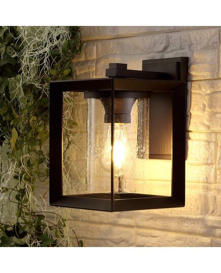 A rich oil-rubbed bronze finish accentuates the clean lines of our modern, cube-shaped light fixture. The clear seeded glass cylinder adds unexpected texture to this light fixture's minimalist design; an Edison-style LED bulb creates a warm ambiance. This versatile outdoor light adds clean, modern style to your front entry, back porch or patio.