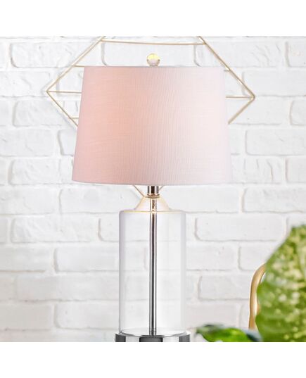 This table lamp radiates modern elegance with its glass base and polished nickel accents. Simple, but stylish, the details -- an acrylic finial, silk-wrapped cord, and rotary switch -- exude luxury. A linen shade completes the design.