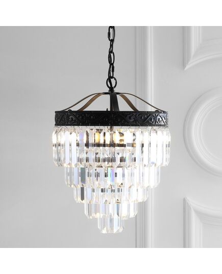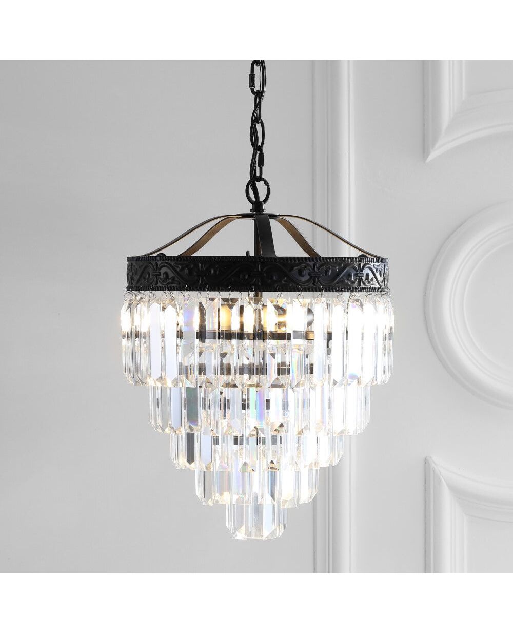 Add timeless elegance to your space with this clear crystal chandelier and its sparkling shade made from faceted rectangles. A band of polished nickel metal adorns the top of the tiered, upside down cake design. This striking accent brightens your home with 2 lights and is compatible with any 40W bulbs, including CFL or LED.