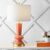 This lamp's angular shape and fresh coral color will add snappy style to your mid-century modern interior. Two lamps would make the perfect pair for a bedroom, living room, or entry console. The retro shape adds a vintage look, and gold fittings satisfy your inner Maximalist. Includes an energy-saving LED bulb.
