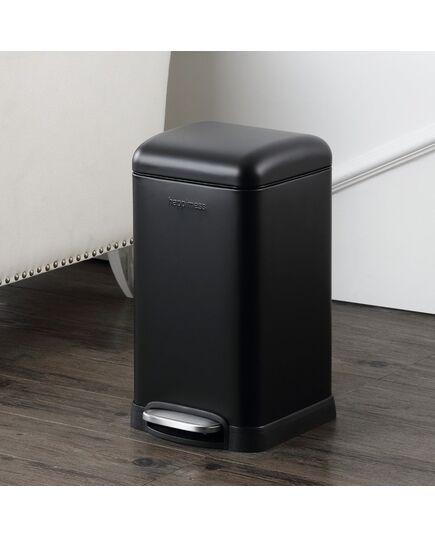 Our sleek black trash can combines quality construction with mid-century modern styling for a small kitchen, bathroom, bedroom, or office. The dark finish makes a wonderful accent, and the tall shape fits easily into a small space. Dispose of trash hands-free with the convenient step pedal.