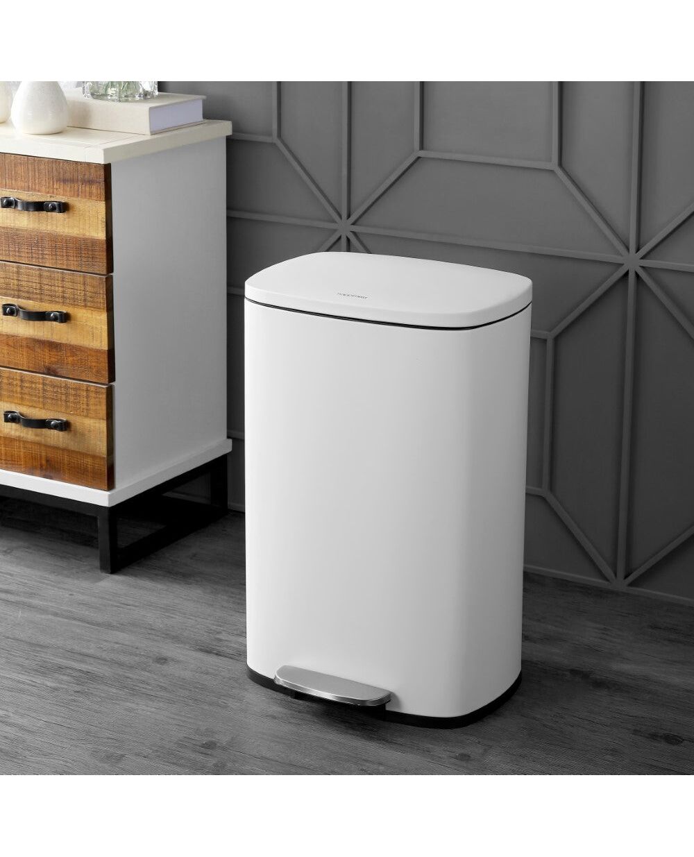 This rectangular 15-gallon trash can is the perfect solution for the family or office in need of top-of-the-line functionality. Featuring a profile hinge and rectangular silhouette -- its sleek silhouette allows it to sit close to a wall or cabinet. It's design features don't end there -- its finished in fingerprint-resistant brushed stainless steel, features a step-on mechanism that allows for smooth openings, and has a removable plastic liner that makes bag changes a cinch. For a limited time, get a matching, smaller 1.3 gallon step-pedal trash bin FREE with your purchase of this style.
