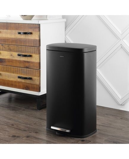 Our classic chrome trash can combines quality construction with modern styling for your kitchen or office. A satin chrome finish suits any decor, and the tall, narrow shape fits easily into a small space. Dispose of trash hands-free with the convenient step pedal.