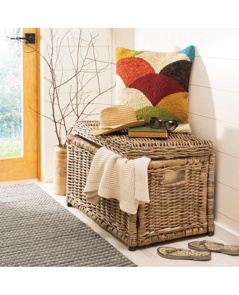 This chestnut brown wicker trunk is perfect for entryways or underneath consoles. In addition to adding style to a room, its removable lid and storage capacity make it a practical and durable solution for toys, shoes, or books. Best of all, this versatile trunk folds flat for storage and is easy to assemble, so it can be tucked under a bed when not in use.
