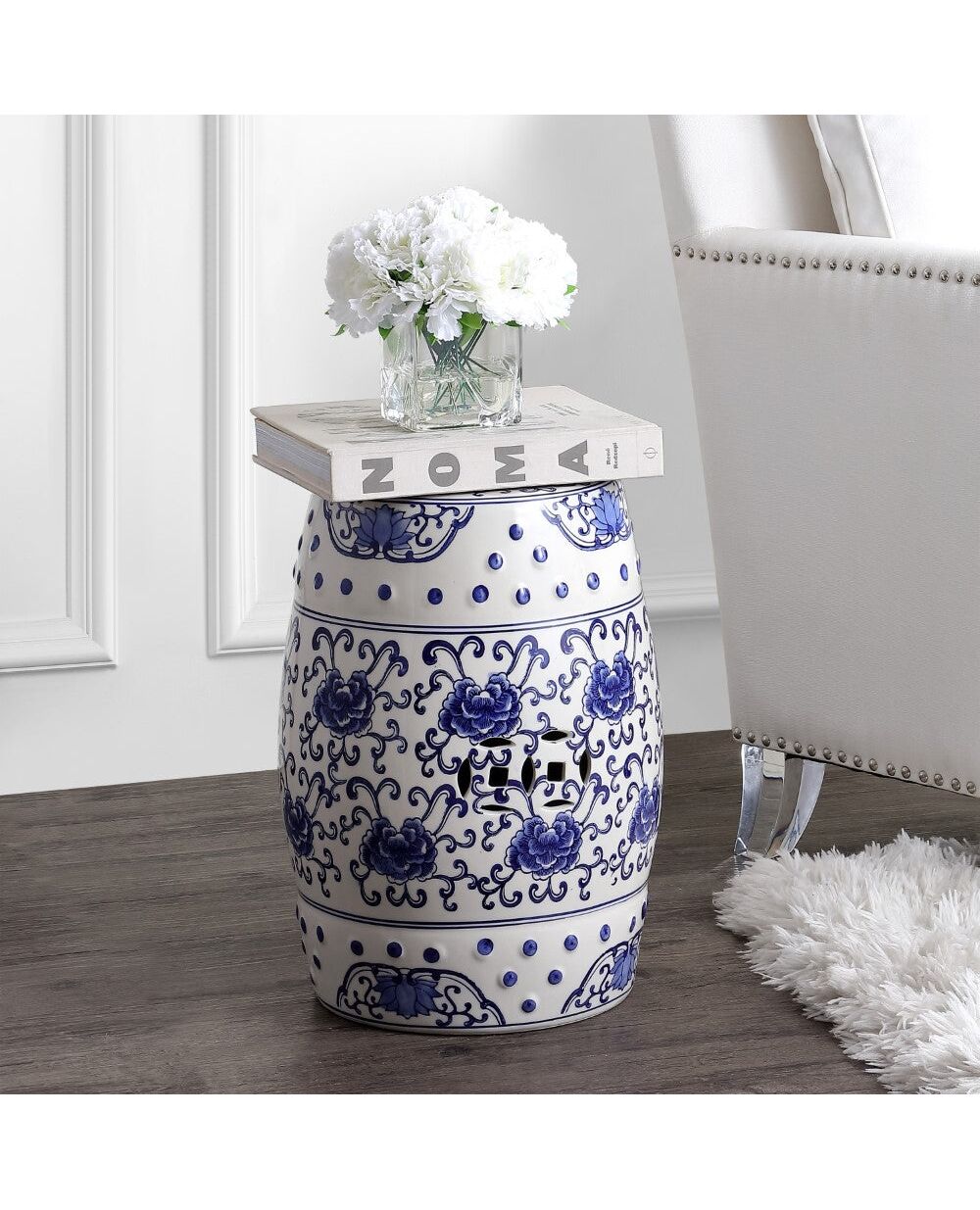 Lotus Flower 17.8" Chinoiserie Ceramic Drum Garden Stool