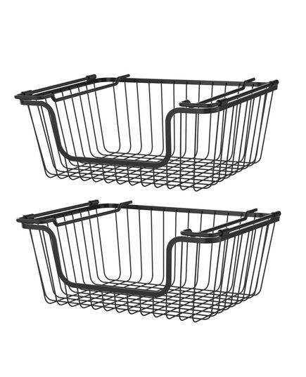 Oceanstar Stackable Metal Wire Storage Basket Set for Pantry, Countertop, Kitchen or Bathroom – Black, Set of 2