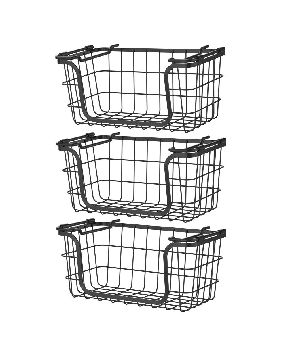 Oceanstar Stackable Metal Wire Storage Basket Set for Pantry, Countertop, Kitchen or Bathroom – Black, Set of 3