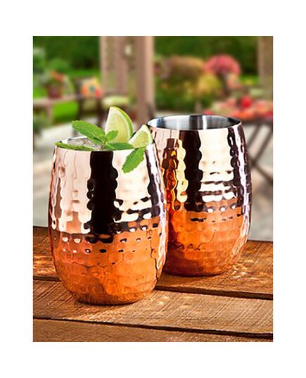 Double Wall Copper Plated Stemless Moscow Mule Cups Set of 2