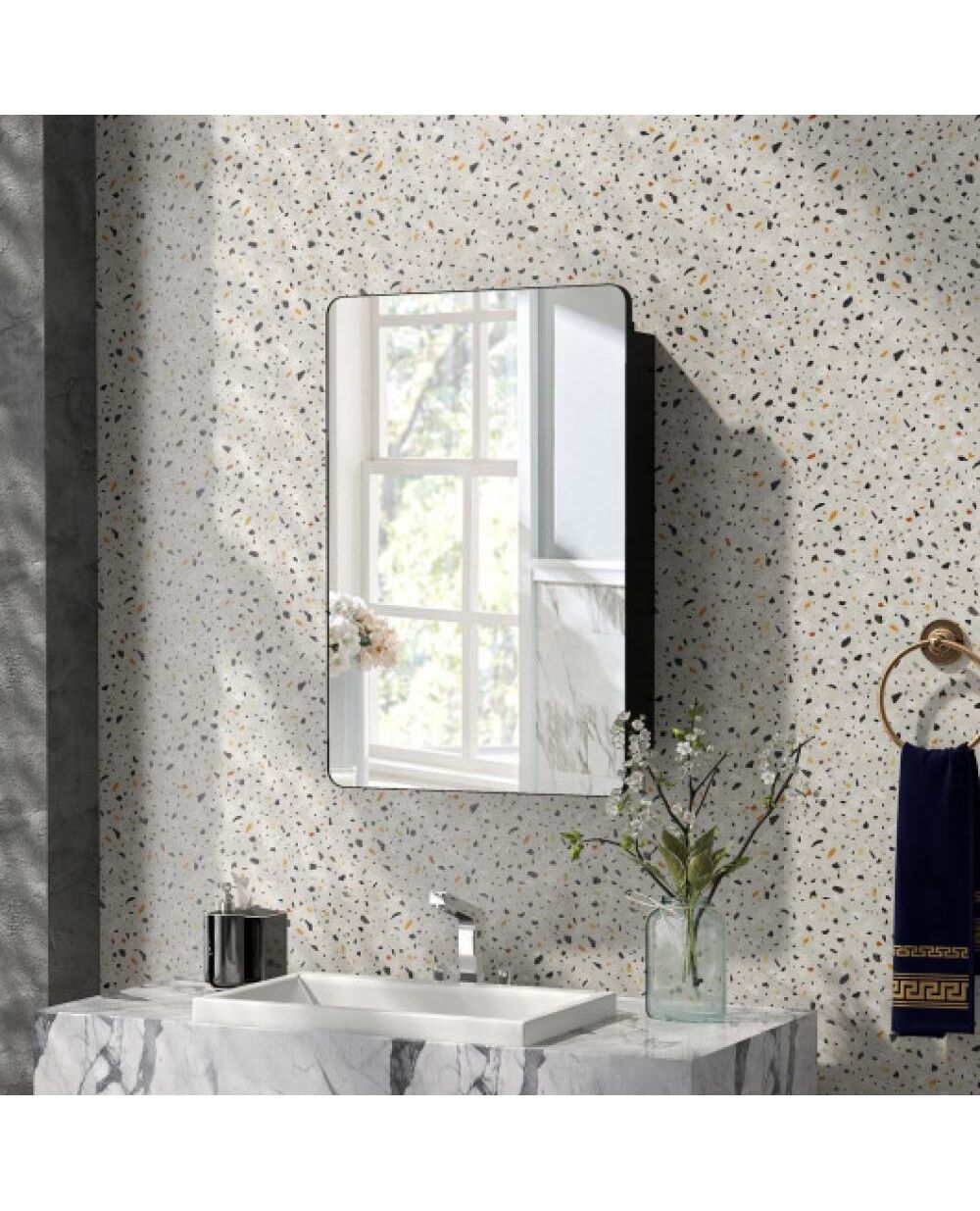 20 x30 Inch Multi-Functional Bathroom Mirror Cabinet with Adjustable Shelves-Black