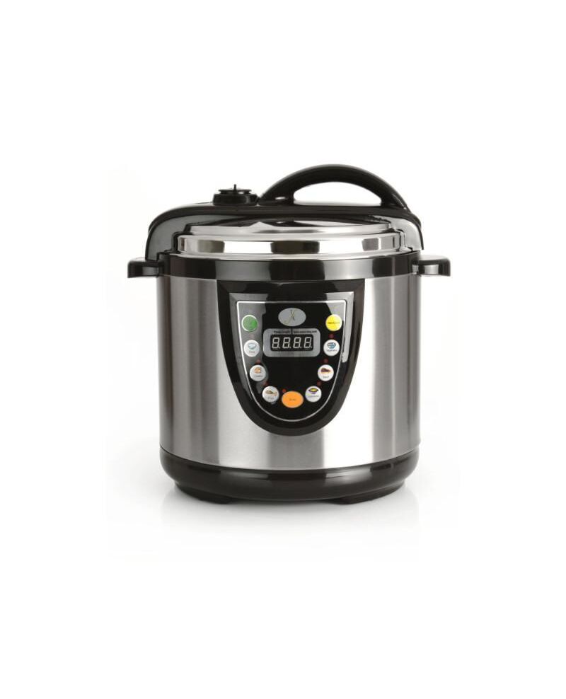 The 5-in-1 electric pressure cooker is designed to use the latest technology to save you time and money. The cooker has the benefits of a pressure cooker, rice cooker, steamer, and warmer. The features include programmable temperature and pressure control. The cooker has new and distinctive functionality along with contemporary exterior design. It is reliable and safe to operate providing energy savings and consistent quality cooking results. 110volts and 48" cord length. Material - 18/10 Stainless Steel dimension - 14.6x12.6x12.6 Use & Care Instruction - Hand wash Recommended Warranty - 2 Year Limited Warranty Product Id - 8520001