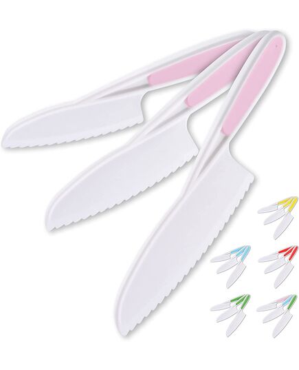 Your kids will develop a sense of confidence and have fun using these amazing knives without being intimidated. Set includes 1 small, 1 medium, and 1 large nylon knife. Made of durable 100% BPA-free nylon. Rubberized handles ensure a firm grip and prevent slipping. The best choice for the first knife in the kitchen.