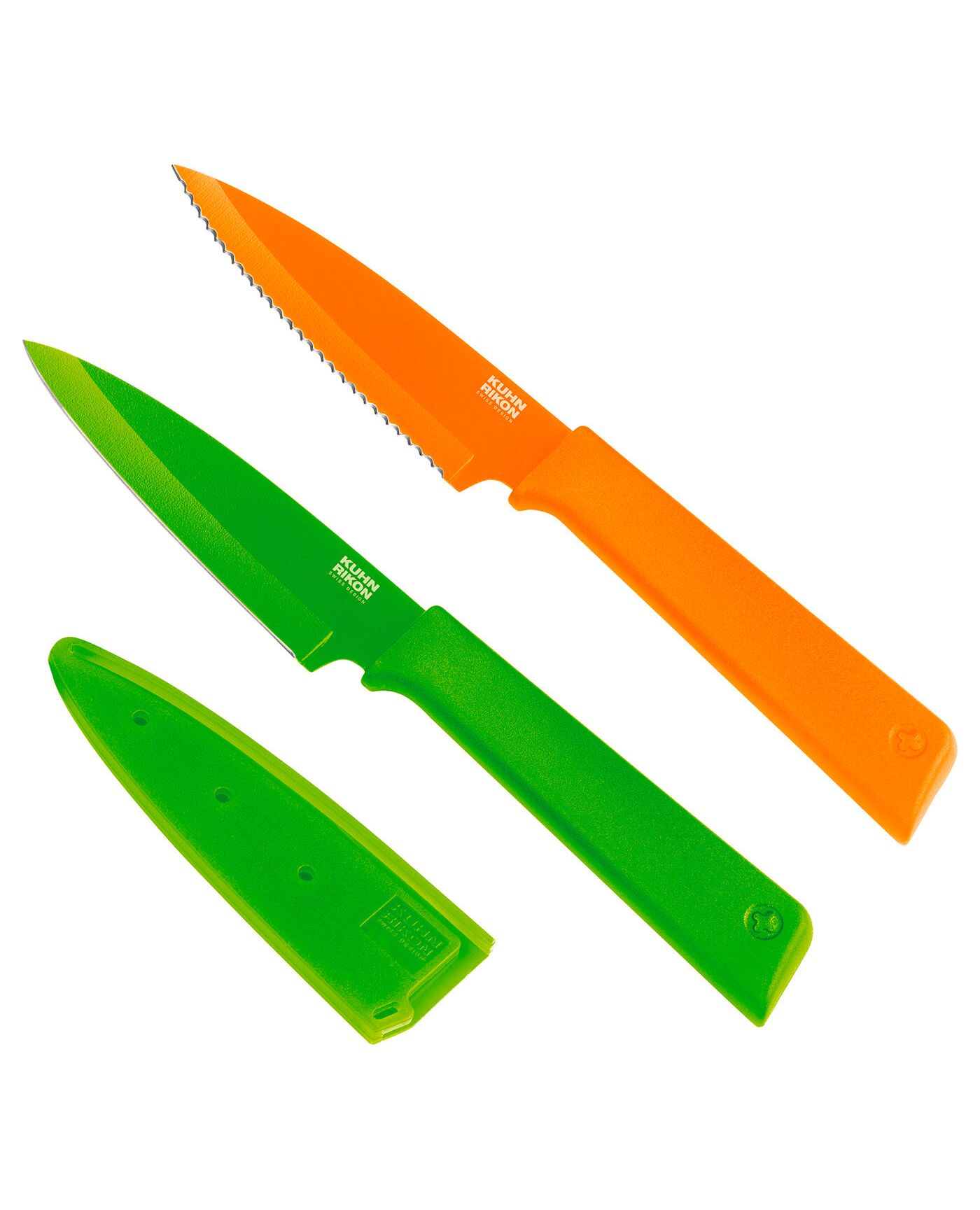 Kuhn Rikon Colori+ Prep Set, Set of 2 Serrated & Paring Knives, Orange/Green