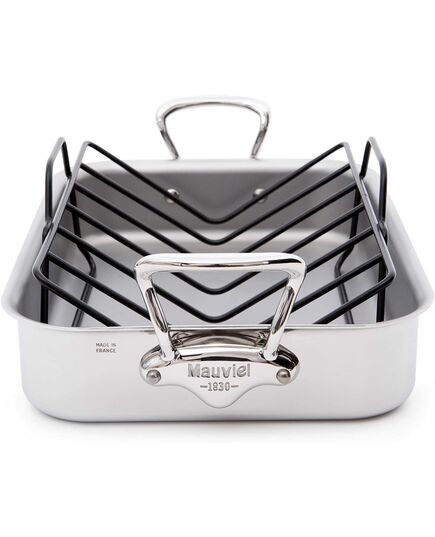 Mauviel M'Cook Stainless Steel Roasting Pan With Rack, 13.5 X 9.8 Inch