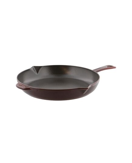 The Staub fry pan browns foods beautifully, be it chicken breasts, potatoes, or bacon. The enameled black matte interior imparts texture, promoting exceptional browning. Cast iron offers steady, even heat distribution, so the temperature of the pan won't drop as you cook. Low, curved sides make it easy to flip the food, which releases easily.Staub enameled cast iron cookware is the choice of the world's best chefs. With exceptional durability, it is perfect for day-to-day use in both gourmet home kitchens and prestigious restaurants around the world. Each piece transitions beautifully from the kitchen to the table. Built to last a lifetime, these heirloom pieces can be passed from generation to generation. Made in France Oven Safe up to 500F Smooth enamel bottom works on all stovetops Each piece is one of a kind Rough texture results in exceptional browning Requires no seasoning Dishwasher safe.