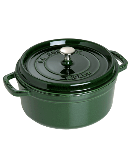 The Staub cocotte is unsurpassed for slow-cooking meats and vegetables to tender perfection, and for simmering hearty stews and soups. Cast iron possesses exceptional heat-retaining qualities, so the pot heats evenly throughout. The innovative lid features tiny spikes on the interior that continually release condensed liquid back onto the food, yielding moist, flavorful results.Staub's special matte black enamel interior and self-basting spiked lid guarantee perfect browning and braising for flavor-enhanced food. With their exquisite enamel finish, each piece transitions beautifully from the kitchen to the table. From comfort food to sumptuous suppers, every dish is special when served in Staub.Staub enameled cast iron cookware is the choice of the world's best chefs. With exceptional durability, it is perfect for day-to-day use in both gourmet home kitchens and prestigious restaurants around the world. Built to last a lifetime, these heirloom pieces can be passed from generation to generation. Made in France Heavy weight, tight-fitting lid retains moisture, spikes on the lid create a rain-forest effect evenly returning juices back onto food Oven safe up to 900F/482C without lid, Lids are oven safe up to 500F/260C Nickel steel knob Smooth enamel bottom works on all stovetops, including gas, electric, glass, ceramic, induction, and halogen Unique, interior matte texture results in exceptional browning Dishwasher safe