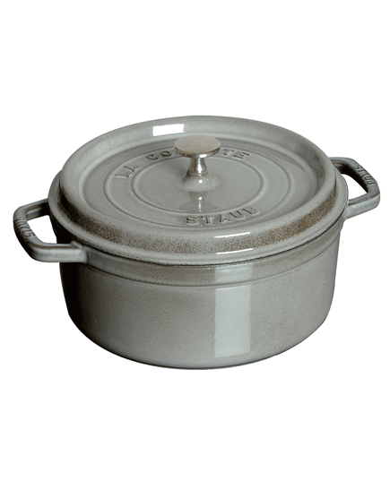 The Staub cocotte is unsurpassed for slow-cooking meats and vegetables to tender perfection, and for simmering hearty stews and soups. Cast iron possesses exceptional heat-retaining qualities, so the pot heats evenly throughout. The innovative lid features tiny spikes on the interior that continually release condensed liquid back onto the food, yielding moist, flavorful results.Staub's special matte black enamel interior and self-basting spiked lid guarantee perfect browning and braising for flavor-enhanced food. With their exquisite enamel finish, each piece transitions beautifully from the kitchen to the table. From comfort food to sumptuous suppers, every dish is special when served in Staub.Staub enameled cast iron cookware is the choice of the world's best chefs. With exceptional durability, it is perfect for day-to-day use in both gourmet home kitchens and prestigious restaurants around the world. Built to last a lifetime, these heirloom pieces can be passed from generation to generation. Made in France Heavy weight, tight-fitting lid retains moisture, spikes on the lid create a rain-forest effect evenly returning juices back onto food Oven safe up to 900F/482C without lid, Lids are oven safe up to 500F/260C Nickel steel knob Smooth enamel bottom works on all stovetops, including gas, electric, glass, ceramic, induction, and halogen Unique, interior matte texture results in exceptional browning Dishwasher safe