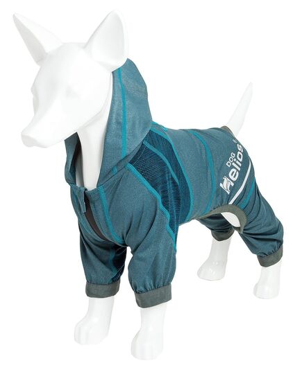 The Dog Helios ® 'Namastail' Lightweight 4-Way-Stretch Yoga Performance Dog Tracksuit Hoodie is all about next-level tranquility and complete flexibility. The entire body features specially engineered Lightweight ultra-elastic fabrics that fuse together for maximum Flexibility, Mobility and Breath-ability that is also Permeable. The main Exo-shell features Elastane and Spandex with 4-way stretch technology that moves in every direction. The Namastail Dog Hoodie also features well-coordinated strategically placed perforated stretchy fabrication trims for Strategic Ventilation that adds Breath-ability perfect for Fitness and Dog Yoga Activities. This Dog Hoodie also features elasticity around the sleeves and the body for a perfectly uniform fit with added growth room that almost feels like a secondary skin. Features Dual-Reinforced stitching at every seam for Durability and Stability with added reflective lining along the outside for night protection. Additionally, the main exo-shell and trims both feature Quick-Drying technology that dries rapidly and while offering Anti-Odor technology that prevents odor causing microbes. Assists with UV Protection against the suns harmful rays and fitted perfectly to help assist in containment or collection of shedded hairs. Features an easy on and off pull over design and an accented pull-over hood with a leash-slit along the back. Machine Washable. Available in Multiple Colors and Sizes. SIZING SPECIFICATIONS - In (Inches) "Back" Length is from Neck to Tail - * See image chart for sizing approximation EXTRA SMALL - Back - 9.8" Chest - 15.4" Neck - 11.4" Sleeve - 2.8" SMALL - Back - 11.8" Chest - 18.1" Neck - 12.6" Sleeve - 3.1" MEDIUM - Back - 13.8" Chest - 20.1" Neck - 14.2" Sleeve - 3.5" LARGE - Back - 15.7" Chest - 21.3" Neck - 16.5" Sleeve - 3.9" EXTRA LARGE - Back - 17.7" Chest - 23.2" Neck - 17.7" Sleeve - 4.3"