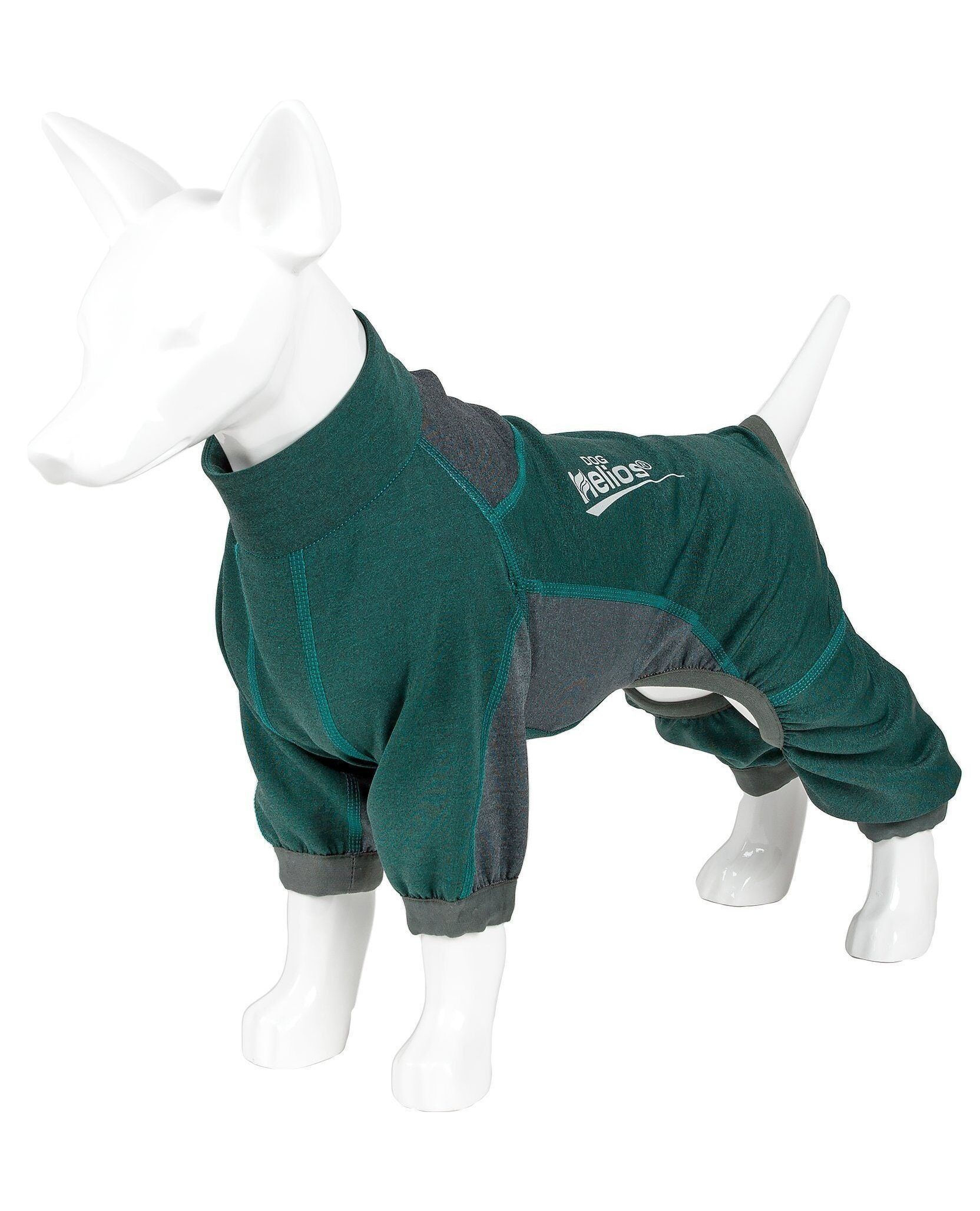 The Dog Helios ® 'Rufflex' Mediumweight 4-Way-Stretch Fitness Yoga Dog Tracksuit Jacket was developed with premium Comfort and Flexibility in mind. The entire body features a specially configured Medium-weight elastic material that both cools and warms the body for year-round flexible comfort. This specially blended fabric features high-level properties of Flexibility for unrestricted Mobility and is also extremely Breathable and Permeable. Great for premium performance, fitness and dog yoga activity. The Exo-shell features 4-way stretch construction that moves in every direction. This dog jacket and tracksuit also features banded elasticity around the sleeves and across the body for a nice almost tapered relaxed fit with added room for growth. Features Dual-Reinforced stitching at every seam for Durability with added reflective taping for night protection. Additionally, this tracksuit features Quick-Drying technology that dries rapidly while offering Anti-Odor technology that prevents odor causing microbes. Assists with UV Protection against the suns harmful rays and fitted perfectly to help assist in containment or collection of shedded hairs. Features a fashion collar with a leash-slit along the back. Machine Washable. Available in Multiple Colors and Sizes. SIZING SPECIFICATIONS - In (Inches) "Back" Length is from Neck to Tail - * See image chart for sizing approximation EXTRA SMALL - Back - 9.8" Chest - 15.4" Neck - 11.4" Sleeve - 2.8" SMALL - Back - 11.8" Chest - 18.1" Neck - 12.6" Sleeve - 3.1" MEDIUM - Back - 13.8" Chest - 20.1" Neck - 14.2" Sleeve - 3.5" LARGE - Back - 15.7" Chest - 21.3" Neck - 16.5" Sleeve - 3.9" EXTRA LARGE - Back - 17.7" Chest - 23.2" Neck - 17.7" Sleeve - 4.3"