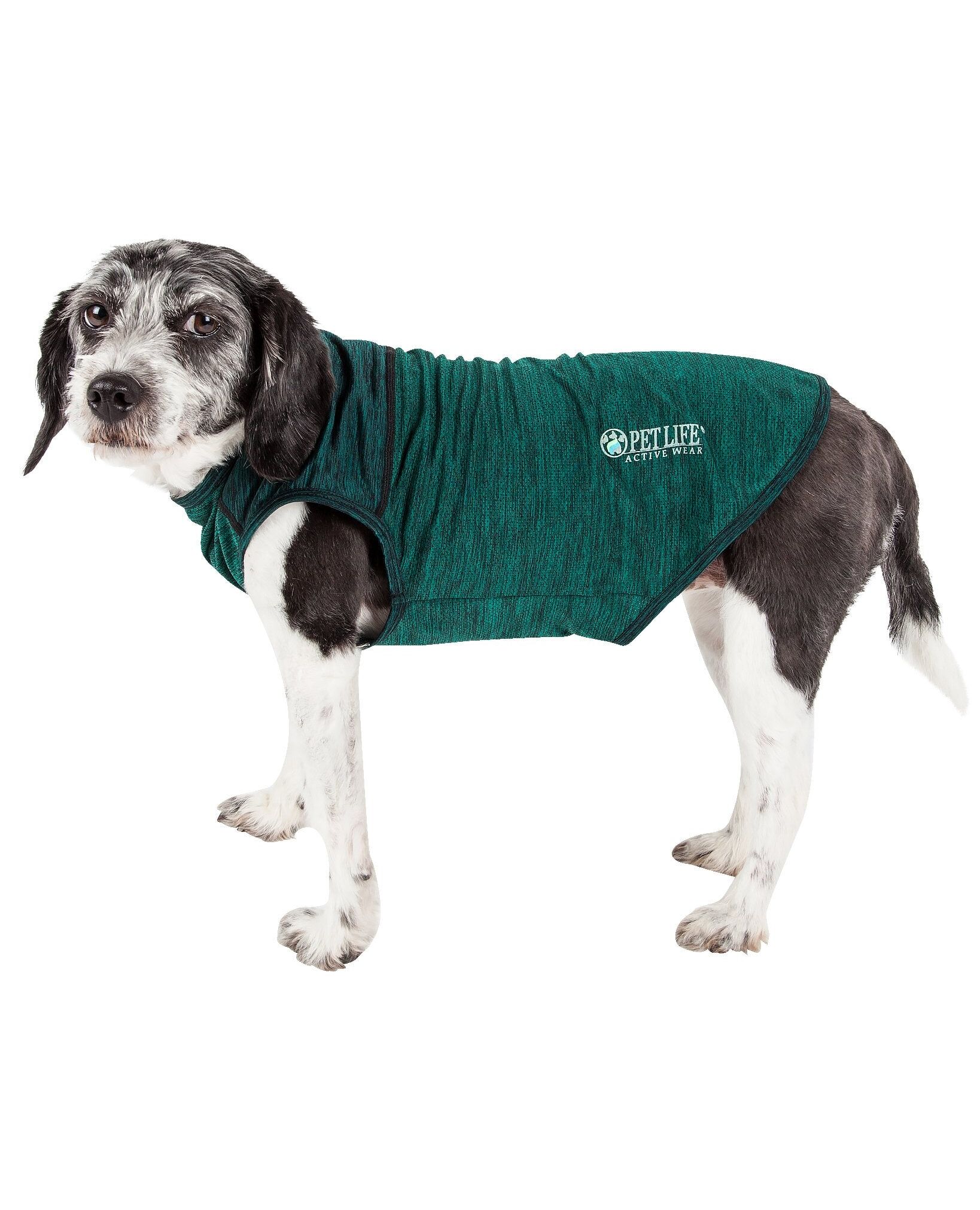 The Pet Life ® Active 'Aero-Pawlse' Quick-Dry and 4-Way-Stretch Yoga Fitness Dog T-Shirt and Tank Top is an entire system comprised of Ultra-Lightweight, Breathable and well Ventilated specially engineered fabrics that fuse together to help enhance Mobility and Breath-ability. Features 4-Way Stretch Construction that moves better in every direction with a customized fit that's further than next to skin or Fur without the squeeze and won't bunch up. The top layer features a specially formulated stretchy Ultra-Elastic and Breathable Micro-fiber and the bottom portion features specially formulated perforated and breathable panels that offer strategic ventilation. This Dog Tank Top features combined soft-touch flexible fabrics with Quick-Drying properties that repel body moisture or sweat while offering Anti-Odor technology that assists with odor causing microbes. Perfect for outdoor or dog yoga activities. The Aero-Pawlse Tank offers UV Protection against the suns harmful rays and fitted perfectly to help assist in containment of shedded hairs. Design features Dual Reinforced stitching at every seam for longevity with a Pull-Over design for easy on and off access and Reflective-Taping for added night visibility and is Machine Washable. This style is part of our Pet Life ® Activewear Collection. Available in Multiple Sizes and Colors. SIZING SPECIFICATIONS - In (Inches) "Back" Length is from Neck to Tail - * See image chart for sizing approximation. EXTRA SMALL - Back - 9.63" Chest - 12.75" Neck - 9.5" SMALL - Back - 10.63" Chest - 15.75" Neck - 12.5" MEDIUM - Back - 14.63" Chest - 19.75" Neck - 14" LARGE - Back - 18.63" Chest - 24.75" Neck - 16.5" EXTRA LARGE - Back - 21.63" Chest - 29.75" Neck - 19.5"