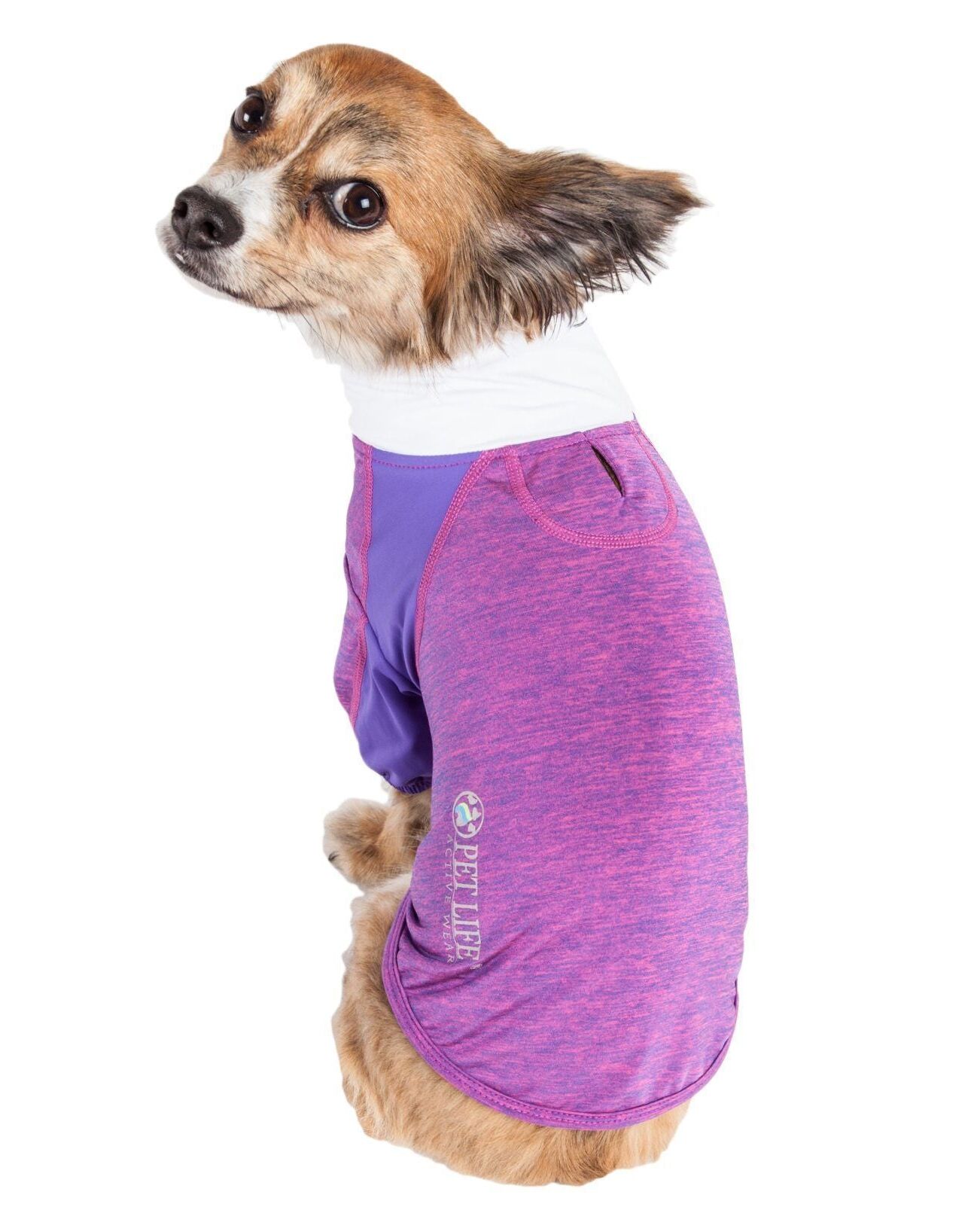 The Pet Life ® Active 'Chewitt Wagassy' 4-Way-Stretch Yoga Fitness Long-Sleeve Dog T-Shirt features specially engineered Stretchy fabric that are Lightweight and Permeable resulting in a well Ventilated system that is specially developed to maximize Mobility and Breath-ability. Features 4-Way Stretch Technology that moves better in every direction with a customized relaxed fit without the squeeze and won't bunch up. The side of the body and arms feature a lighter blend of fabric for strategic ventilation. Features Quick-Drying properties that dries extremely fast while offering Anti-Odor technology that prevents odor causing microbes. The Chewitt-Wagassy Long Sleeve T-shirt also offers UV Protectaion against the suns harmful rays and fitted perfectly to help assist in containment or collection of shedded hairs. This Dog T-shirt is perfect for performance fitness and outdoor dog yoga Activities. Features Dual Reinforced stitching at every seam for durability with a convenient zippered design with protective zipper flaps preventing the pet's hairs from getting caught within the zipper tracks. Additionally this T features Reflective Taping for added night visibility and a Leash Slit along the back. Machine Washable. This style is part of our Pet Life ® Activewear Collection. Available in Multiple Sizes and Colors. SIZING SPECIFICATIONS - In (Inches) "Back" Length is from Neck to Tail - * See image chart for sizing approximation EXTRA SMALL - Back - 9.5" Chest - 13.5" Neck - 12.5" Sleeve - 4.5" SMALL - Back - 11.5" Chest - 16.5" Neck - 13.5" Sleeve - 5 MEDIUM - Back - 15" Chest - 20.5" Neck - 15.5" Sleeves - 5.5" LARGE - Back - 18.9" Chest - 25.5" Neck - 17.3" Sleeve - 6.1" EXTRA LARGE - Back - 22" Chest - 30.5" Neck - 19.8" Sleeve - 7"