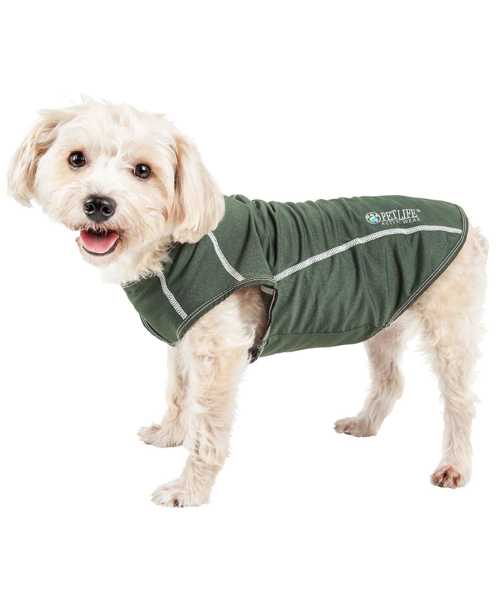 The Pet Life ® Active 'Racerbark' 4-Way-Stretch Yoga Fitness Dog T-Shirt and Tank Top is comprised of a Lightweight and Stretchy Yoga-like Performance fabric that maximizes Mobility and Comfort. Features 4-Way Stretch Construction that moves better in every direction with a customized fit that's further than next to skin or Fur without the squeeze and won't bunch up. This specially formulated stretchy Micro-Fiber features a higher-grade of Elasticity that won't ever lose it's shape and is Permeable which provides Breath-ability. This Smooth-to-the-touch fabric features Quick-Drying properties that repels body moisture or sweat and features Anti-Odor technology that assists with odor causing microbes. The Racerbark Dog Tank Top is also UV Protectant against the suns harmful rays and strategically fitted to help assist in containment of shedded hairs. Perfect for fitness and Dog Yoga activity this performance dog t-shirt also features a Dual-Reinforced stitching at every seam for added durability with a Pull-Over design for easy on and off access and Reflective-Taping for added night visibility. Machine Washable. This style is part of our Pet Life ® Activewear Collection. Available in Multiple Sizes and Colors. SIZING SPECIFICATIONS - In (Inches) "Back" Length is from Neck to Tail - * See image chart for sizing approximation. EXTRA SMALL - Back - 9.63" Chest - 12.75" Neck - 9.5" SMALL - Back - 10.63" Chest - 15.75" Neck - 12.5" MEDIUM - Back - 14.63" Chest - 19.75" Neck - 14" LARGE - Back - 18.63" Chest - 24.75" Neck - 16.5" EXTRA LARGE - Back - 21.63" Chest - 29.75" Neck - 19.5"